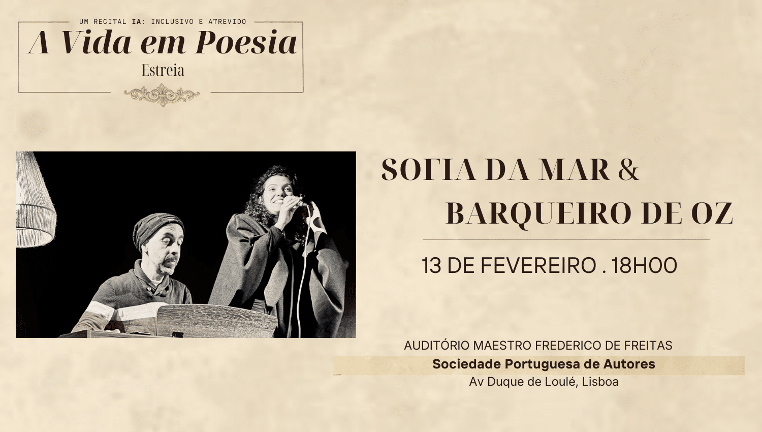No dia 13 de Fevereiro, o Auditório Maestro Frederico de Freitas recebe “A Vida em Poesia”, um recital poético-musical que cruza palavra e a música.